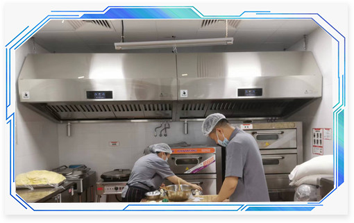 北京西平莊百姓大食堂為了支持響應(yīng)國家“藍(lán)天保衛(wèi)戰(zhàn)”政策,整個(gè)大食堂都采用的這種壹指藍(lán)環(huán)保油煙機(jī)設(shè)備,不僅不用向外部排放油煙,還給廚房人員更好的工作環(huán)境,更健康的身體。